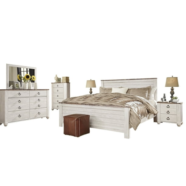 Make your searches 10x faster and better. Make your searches 10x faster and better. Powerful and easy to use. Whitewashed finish on the pieces is wonderfully easy on the eyes. What kind of furniture is in willowton collection? Buydirect provides comprehensive information about your query. Make your searches 10x faster and better. The willowton sleigh bedroom set by signature design is the ultimate statement group for your coastal cottage or shabby chic inspired retreat. Free shipping on all orders over $35. Large scaled shapely bedroom collection features bun feet. Large scaled shapely bedroom set features bun feet. Willowton king panel bed by ashley. How many drawers are in a willowton dressing chest?